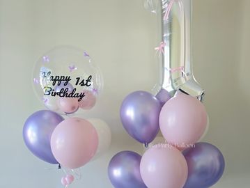 Includes one Number balloon,12inch latex balloon*10 and one customized clear balloon(with small balloons inside)